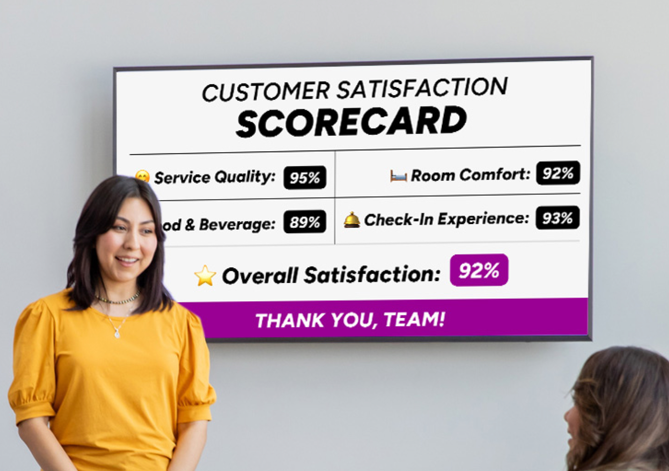 Instead of burying KPIs in dashboards or email reports that few people ever check, digital screens place the most important information right where work happens. This creates a fast, transparent, and highly visible feedback loop that naturally boosts engagement. When employees can see how customers are responding in real time—whether through NPS, satisfaction ratings, review volume, or service metrics—the numbers shift from abstract data points to a clear signal of team performance. It reinforces wins, highlights areas for improvement, and keeps everyone aligned around what actually matters most: delivering a great customer experience.