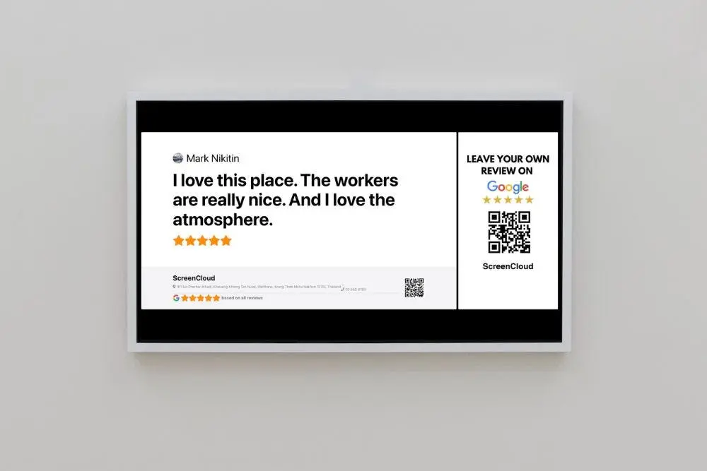 Want to encourage staff further? Display positive customer reviews and integrate the company social media page on digital signage!