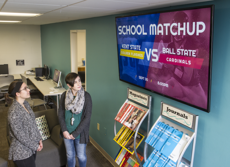 Digital signage can be beneficial for new staff and students as a way to learn the campus and school policies. Image courtesy of Samsung Business Insights.