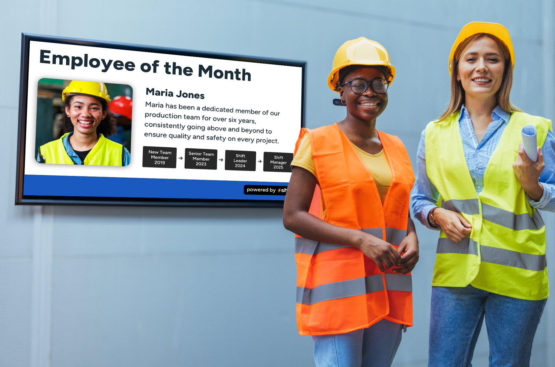 BOH signage makes this much easier to do. You can use your back-of-house screens to welcome new employees, share their roles, experience and interests outside of work.